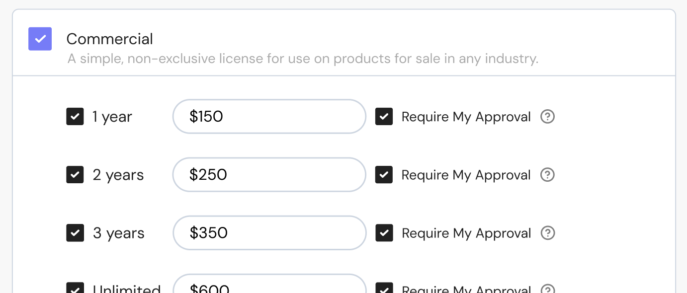 Yes you can! Within your default license preferences, or at the pattern-specific level, simply check the "Require My Approval" option. Before buyers can submit payment, they will be informed that you require approval. You will receive an option in the licensing conversation to approve or deny the request.